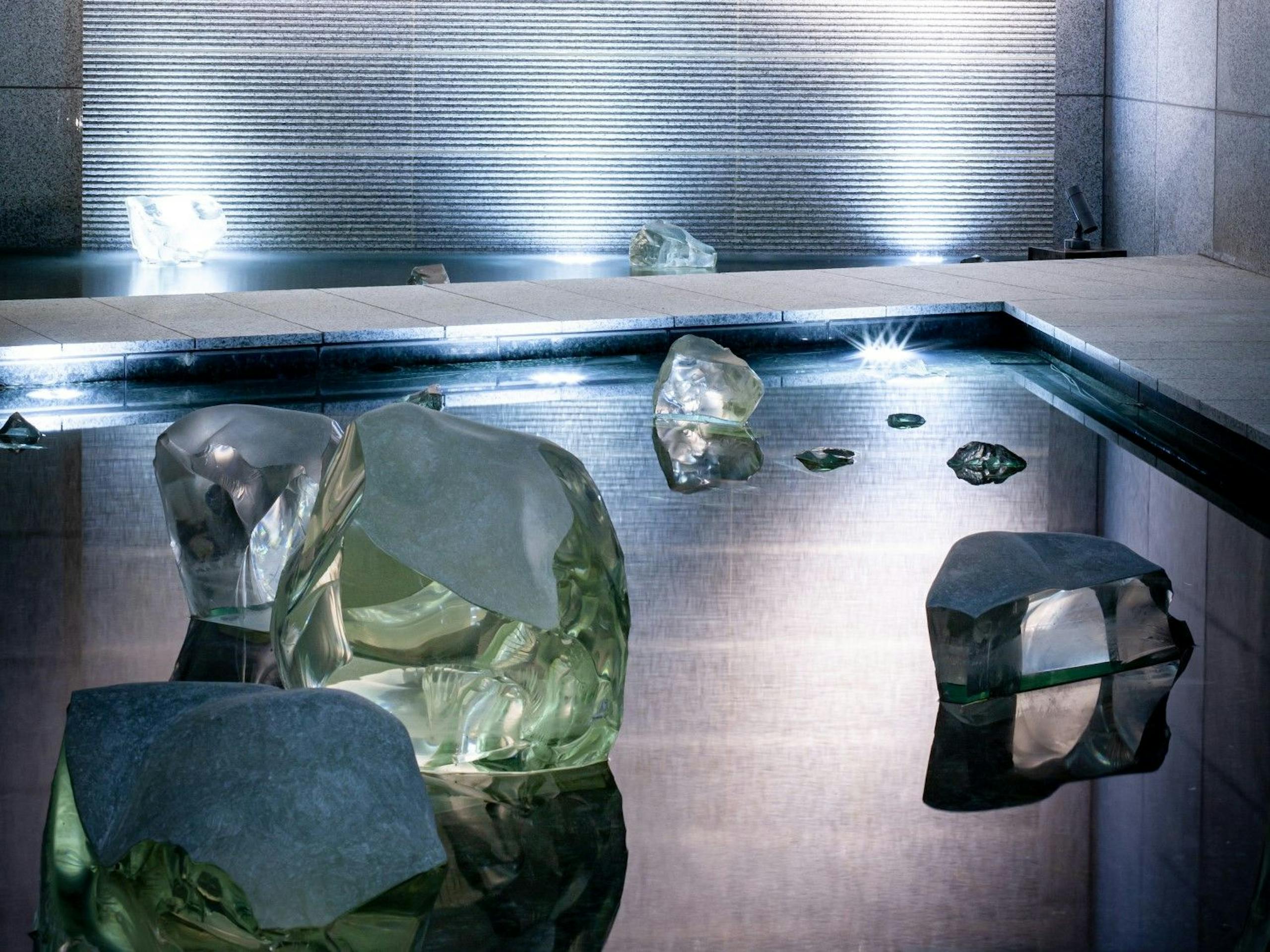 隈研吾氏のデザインした「水 / ガラス」の作品が施設のあちこちに散りばめられています